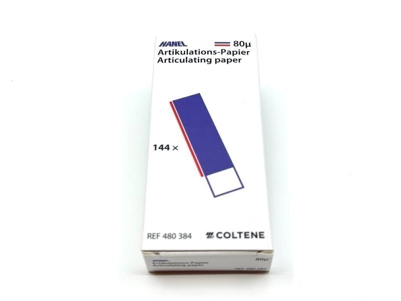 Artikulační papír HANEL je oboustranný artikulační papír pro registraci skusu a rozlišení oblastí vysokého a nízkého žvýkacího tlaku.
