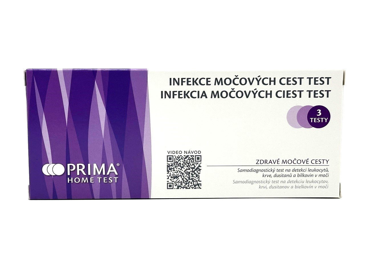 Test obsahuje pevné plastové proužky, na kterých jsou samostatná reagenční políčka. Test je určen pro kvalitativní a semikvantitativní detekci následujících analytů v moči: leukocytů, krve, dusitanů a bílkovin porovnáním barevných reagenčních políček na barevném diagramu pro stanovení výsledků.