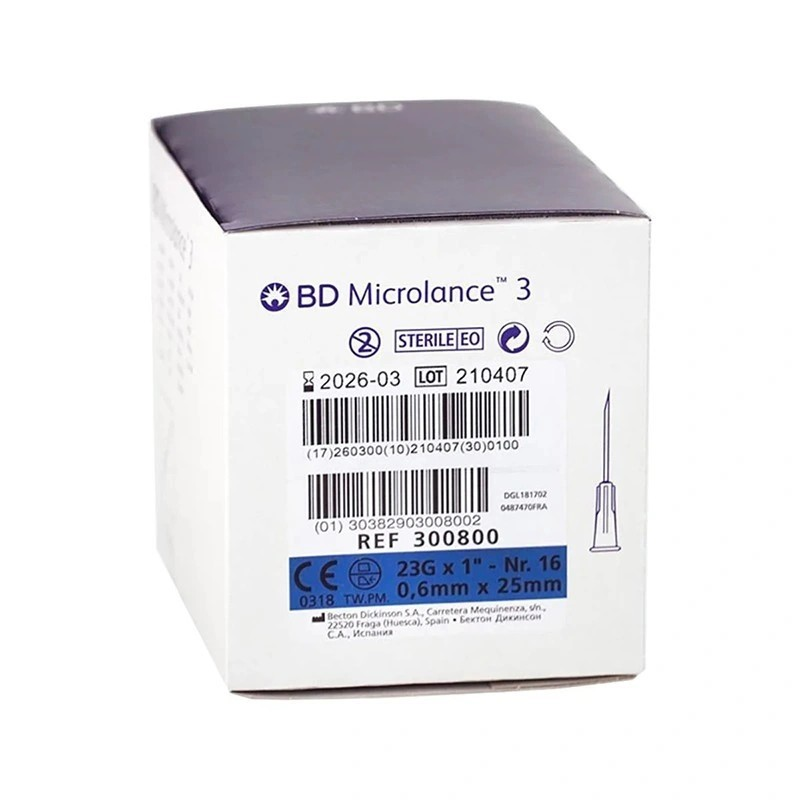 Balení: 100 ks injekční jehly modré 0,6×25