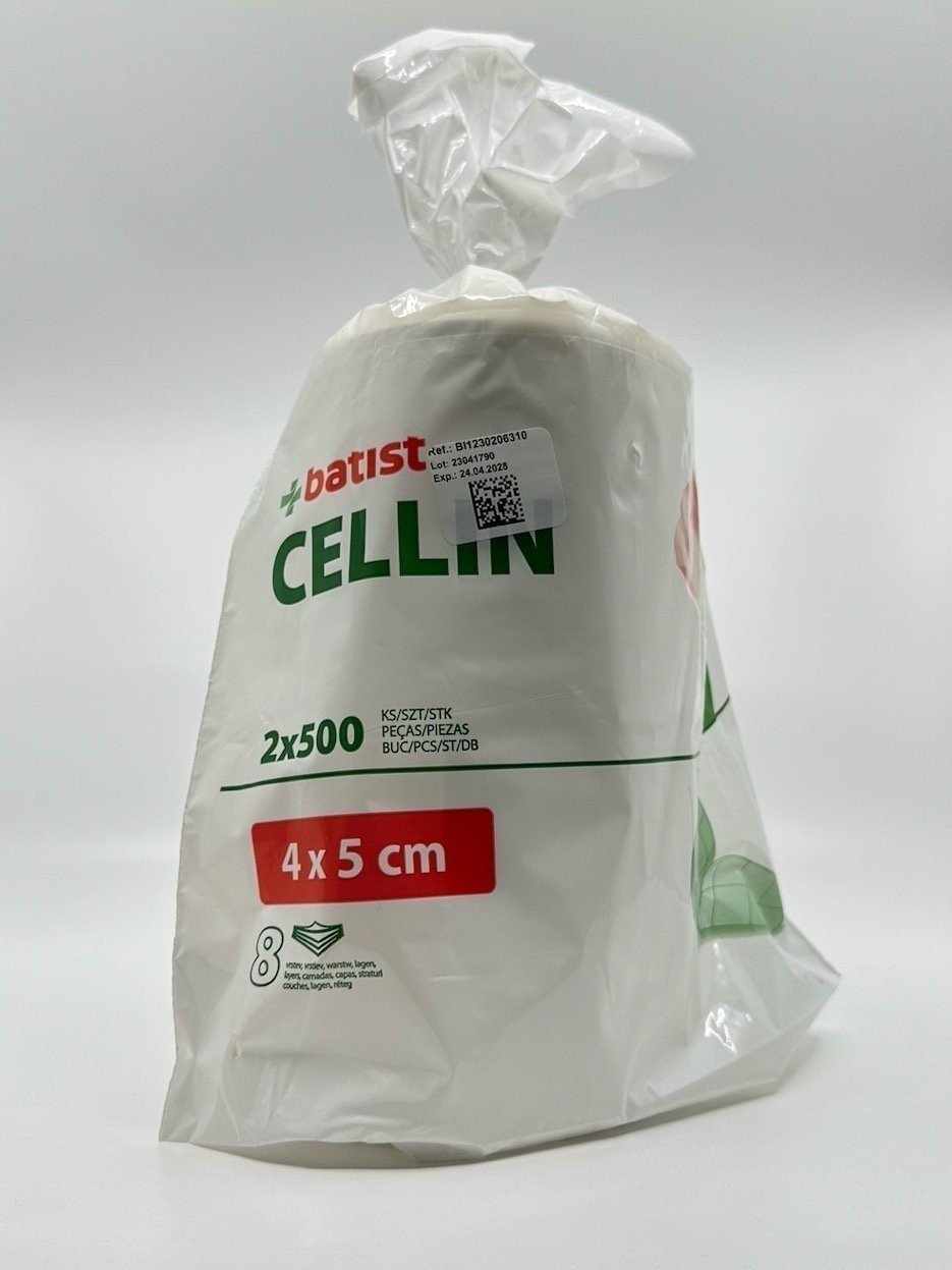 Buničitá vata dělená B-Cellin – buničité tampony jsou vyrobeny z mnohavrstvé bělené buničité vaty s jemnou strukturou. Tampony se zpevněnými okraji mají 8 vrstev, jsou vysoce savé a nepráší.
